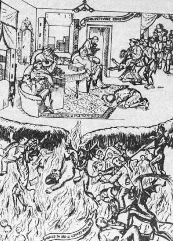 Bien que certains écrivains et compositeurs de livres soient habitués, comme lorsqu'ils donnent un livre à la lumière, à l'adorer ou à l'apporter à certains de leurs aînés: princes, chefs, boyards, nobles, enfants, épouses, amis, parents, etc., cependant, nous, les plus jeunes des Jeria-Moines, adorons et confions cette œuvre à la Très Sainte Trinité vivifiante: au Père et au Fils et au Saint-Esprit, à la Très Sainte Mère de Dieu et à l'éternelle Vierge Marie, aux armées angéliques et à tous les saints. Ce qui nous a aidés à le recréer, à le compléter et à l'illustrer autant que nous pourrions vivre, pour le temporel et le voisinage de tous les gens fatigués pour le mieux.